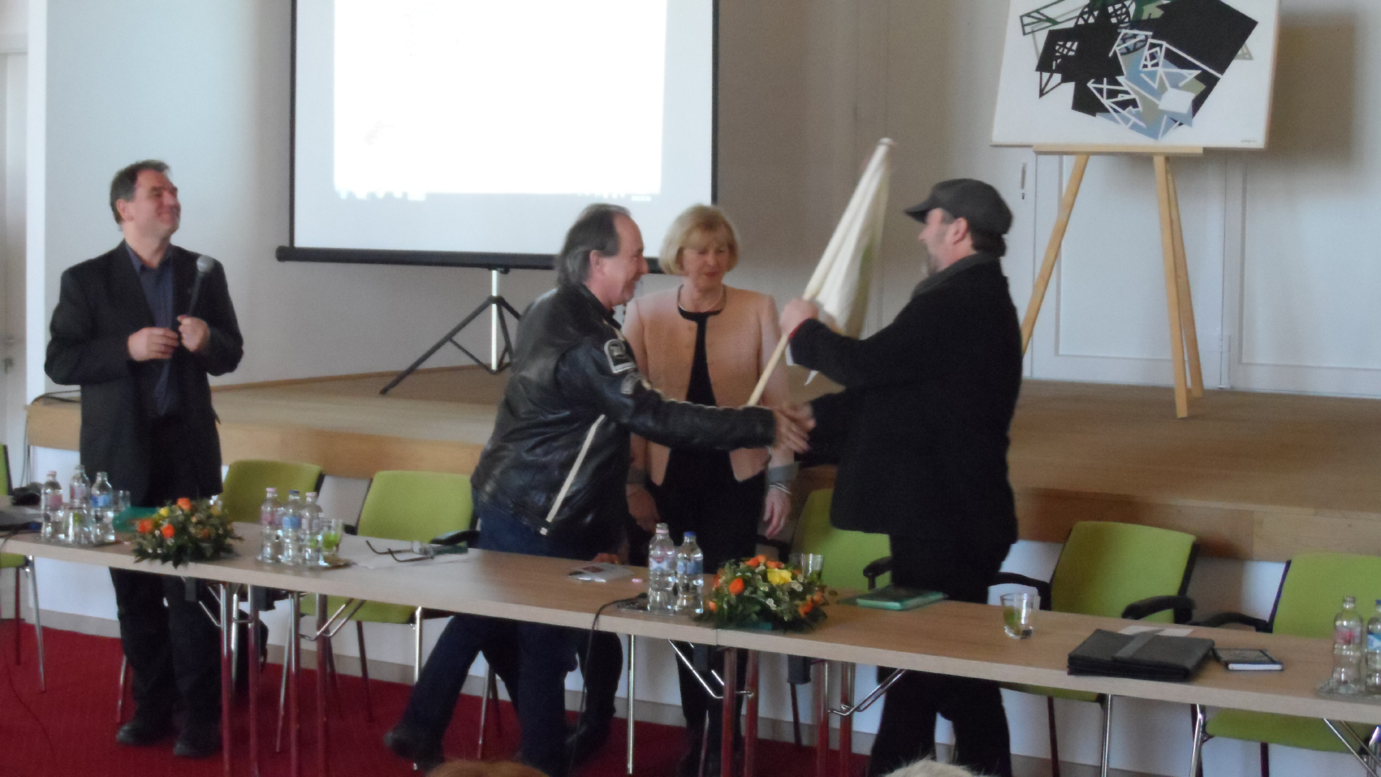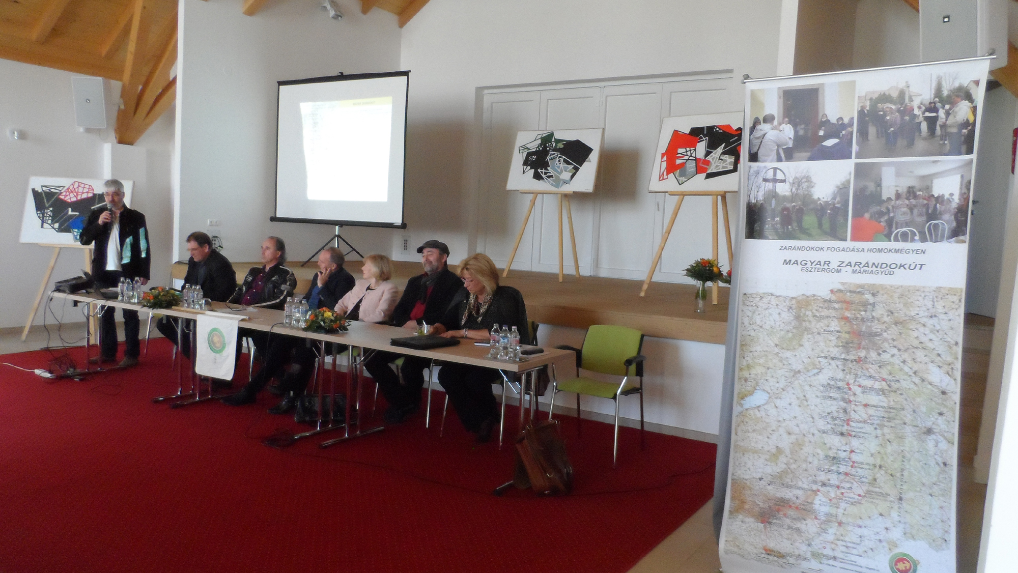 A konferencián Schmittné Makray Katalin örökös zászlós zarándok és Varga Miklós énekes-színész, 2015. zászlós zarándoka mutatta be a 2016-ban a zarándokmozgalom népszerűsítésére felkért új zászlós zarándokot, Rusz Milán színművészt. A Szerb Színház vezetője családjával több alkalommal is bejárta a világhírű spanyolországi zarándokutat, az El Camino-t.