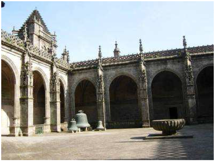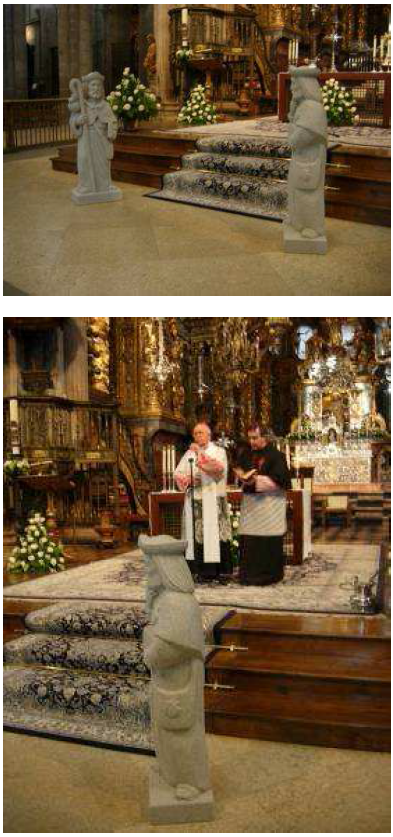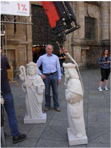 Ebéd után visszatértünk Santiago de Compostelába. Mire visszaértünk, a szobrász a katedrális elé szállította a két szobrot.