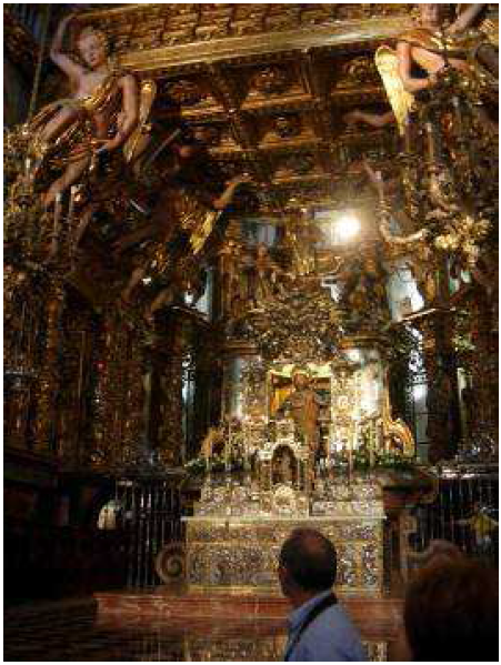 Megnéztük Szt. Jakab sírját a katedrális altemplomában, s mindannyian megérintettük a sír felett található szobrát a teljes bűnbánat reményében.