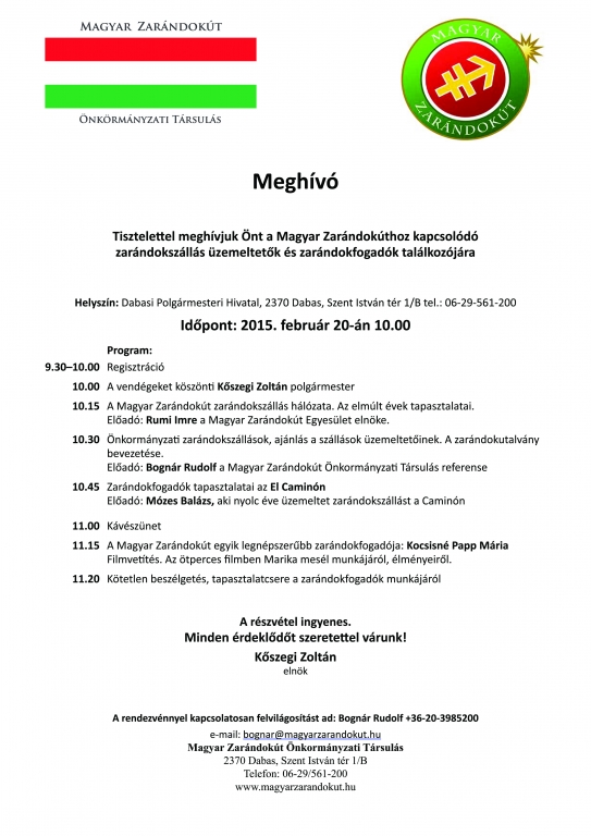 Meghívó zarándokszállás üzemeltetők,zarándokfogadók találkozójára