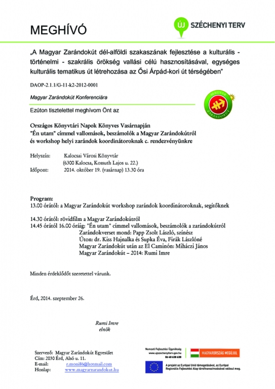 Meghívó az "Én Utam" c. zarándokrendezvényre