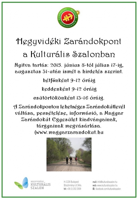 A Zarándokponton lehetséges Zarándokútlevél váltása, pecsételése, információ, a Magyar Zarándokút Egyesület kiadványainak, tárgyainak megvásárlása. (www.magyarzarandokut.hu)