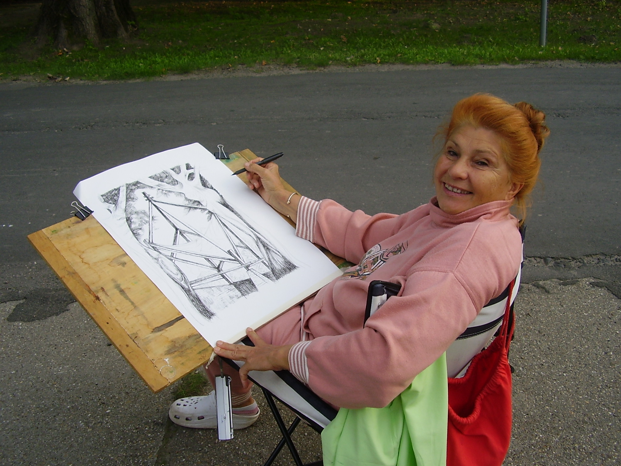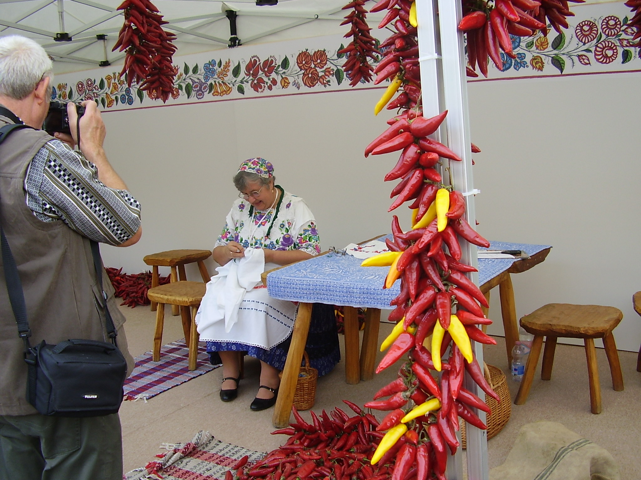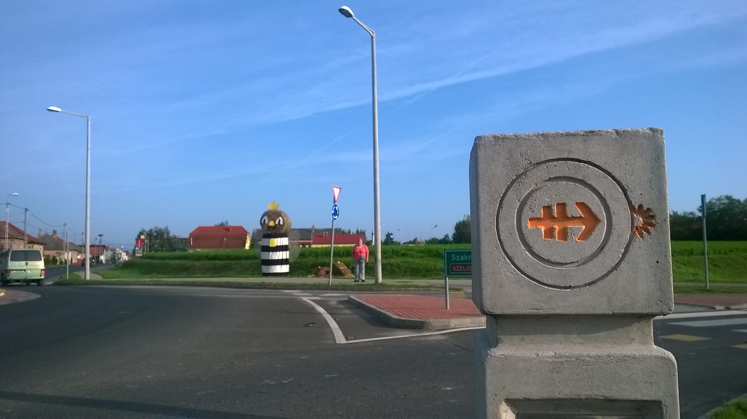 Második nap gyalogoltunk. No, nem sokat, a buszig úgy hét kilométert, az még a magamfajtának sem sok. Aztán Kalocsán már elég sokat, mert a parikafesztiválra mentünk, és hát ott mindent meg kellett szemlélni. (Meg kell jegyeznem, városban ide-oda ténferegni sokkal fárasztóbb, mint akár országúton gyalogolni.) Így láttuk a felvonuló népviseletes gyerekeket, a műsorból egy keveset, a rengeteg népi jellegű árut, a helyi termékek piacát, a pingáló helyi asszonyokat. Ott dedikált Nagy Bandó András, mézet, sajtot lehetett kóstolni, de a legérdekesebb Paprika Jancsi csúzlizdája volt. (A hétköznapi, műanyag giccseket egy hátsó sarokba szorították, éppen jó helyre, nem is volt muszáj észrevenni.) Meg a városból is megnézhettem egy keveset, új helyszíneket, amit azért találtam remeknek, mert a tavaszi kalandozásom során a feltört lábam miatt nem sokat láthattam.